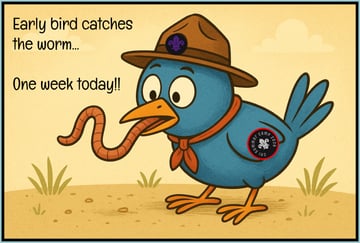 The early bird catches the worm… and it is only one week today to snap up that Early Bird pricing before it goes up $50!